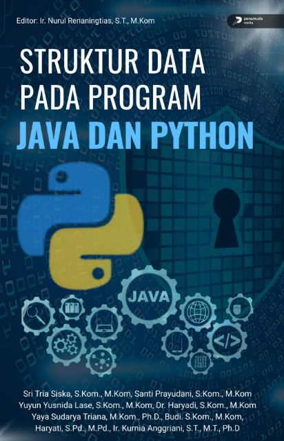 Buku “Struktur Data Pada Program Java dan Python” ini menghadirkan panduan komprehensif untuk memahami konsep dan implementasi struktur data dalam dua bahasa pemrograman populer, Java dan Python. Dimulai dari dasar seperti array dan linked list, buku ini membahas pula stack, queue, tree, graph, hashing, set, dan map, lengkap dengan algoritma pengurutan dan pencarian serta analisis kompleksitas waktu dan ruang. Disertai contoh kode, penjelasan langkah demi langkah, dan studi kasus, buku ini dirancang untuk membantu pembaca, baik mahasiswa maupun programmer pemula, menguasai teknik pemrograman yang efisien dan mampu merancang solusi komputasi yang optimal.